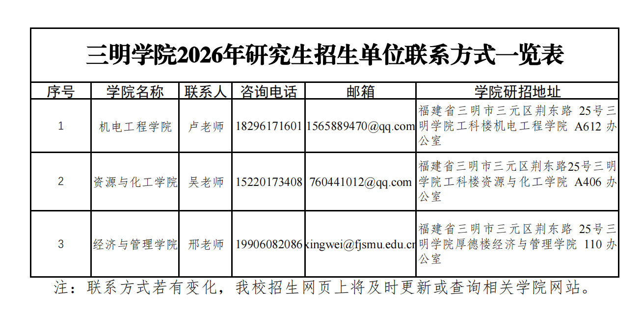 关于所报考专业的具体问题,考生可向各招生学院咨询,联系方式详见《三明学院研究生招生单位联系方式一览表》。